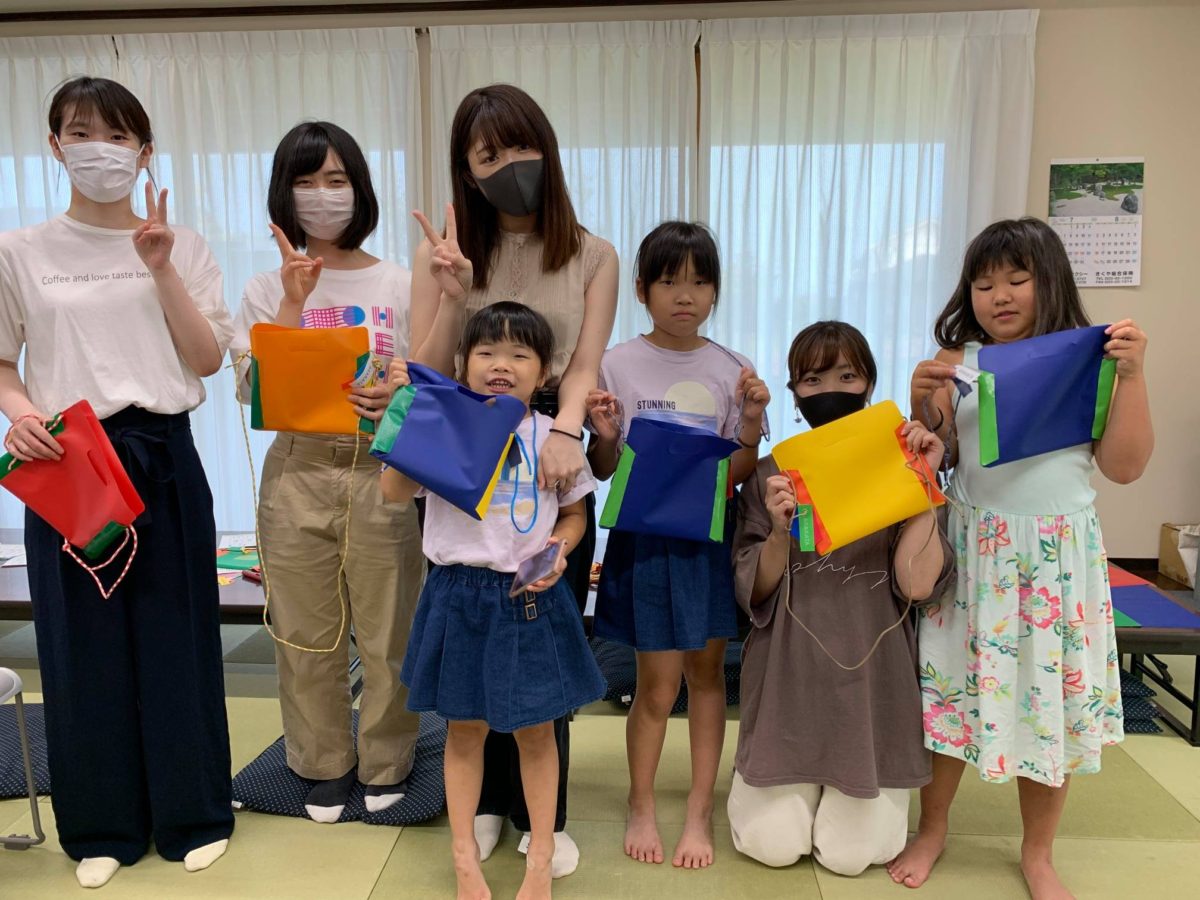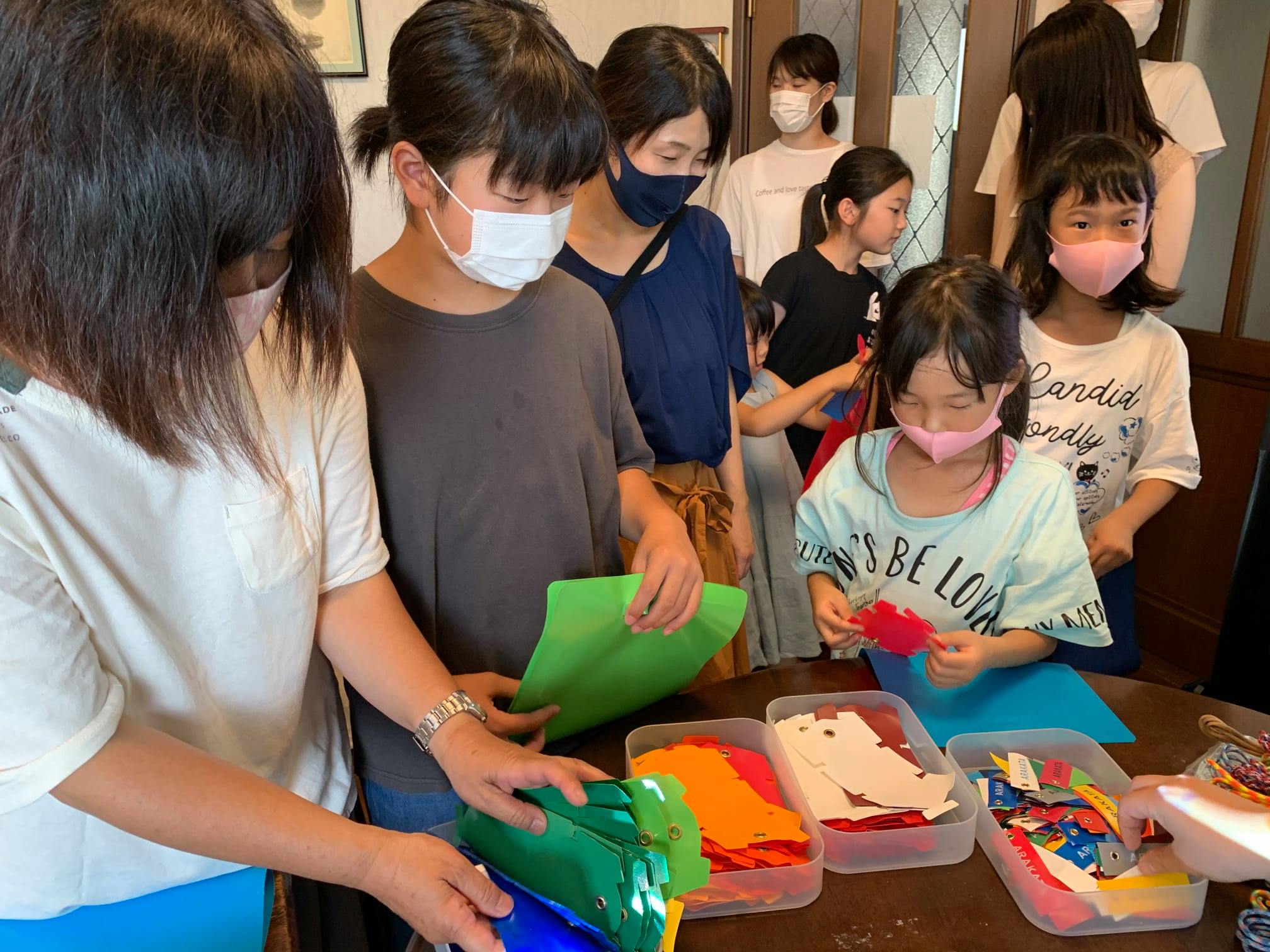 8/22岩沼市内の「れんがのおうち(空き家活用)」と玉浦西・西集会所で「ターポリンでミニバックをつくろう」のワークショックを開催しました。
